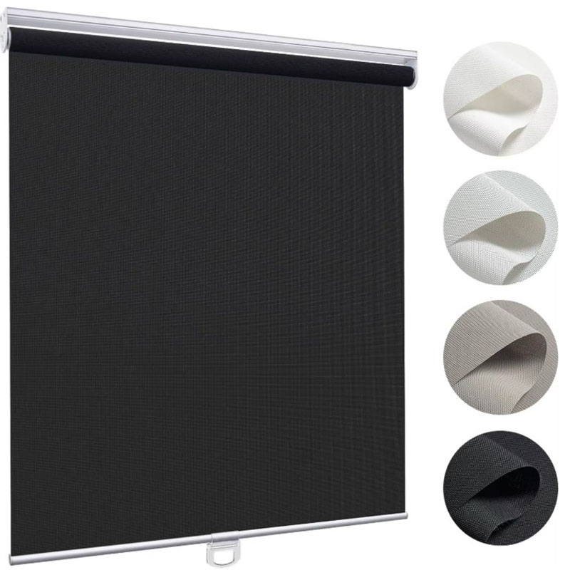 نسيج البوليستر الأبيض والرمادي والأسود والأزرق والفضي والأخضر الخ متين، مقاوم للماء، مظلل، مقاوم للغبار، هادئ، سهل التنظيف، مناسب، آمن، حماية من الأشعة فوق البنفسجية قابلة للتخصيص التعتيم شبه التعتيم